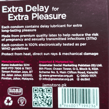 Do Extra Delay Condoms are designed for men who want better control and longer-lasting performance without compromising comfort or safety. These do condoms with delayed lubricant are infused with a specially formulated delay lubricant that helps reduce sensitivity, allowing you to last longer and enjoy more relaxed, confident intimate moments. Buy more: Durex extra safe